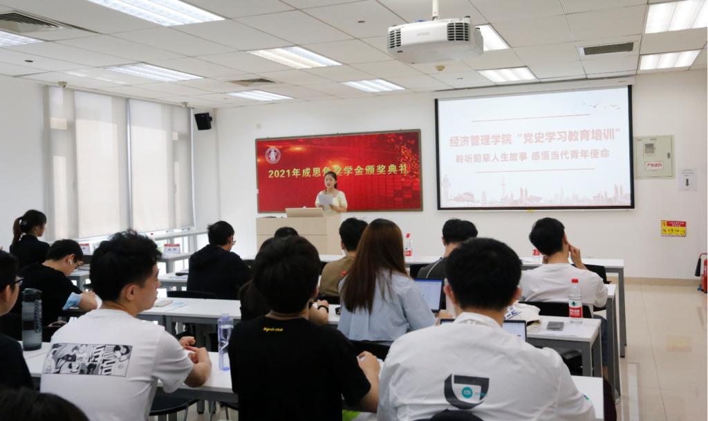单伟教授宣读了2021年成思危奖学金获奖名单,成卓女士为获奖同学颁奖并赠送了《经世济民:智者成思危的一生》和《成思危访谈讲话纪念文集》。