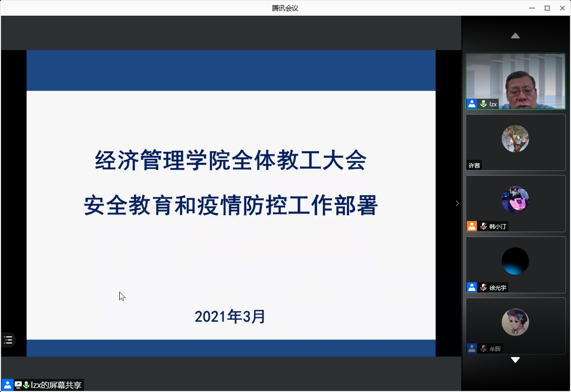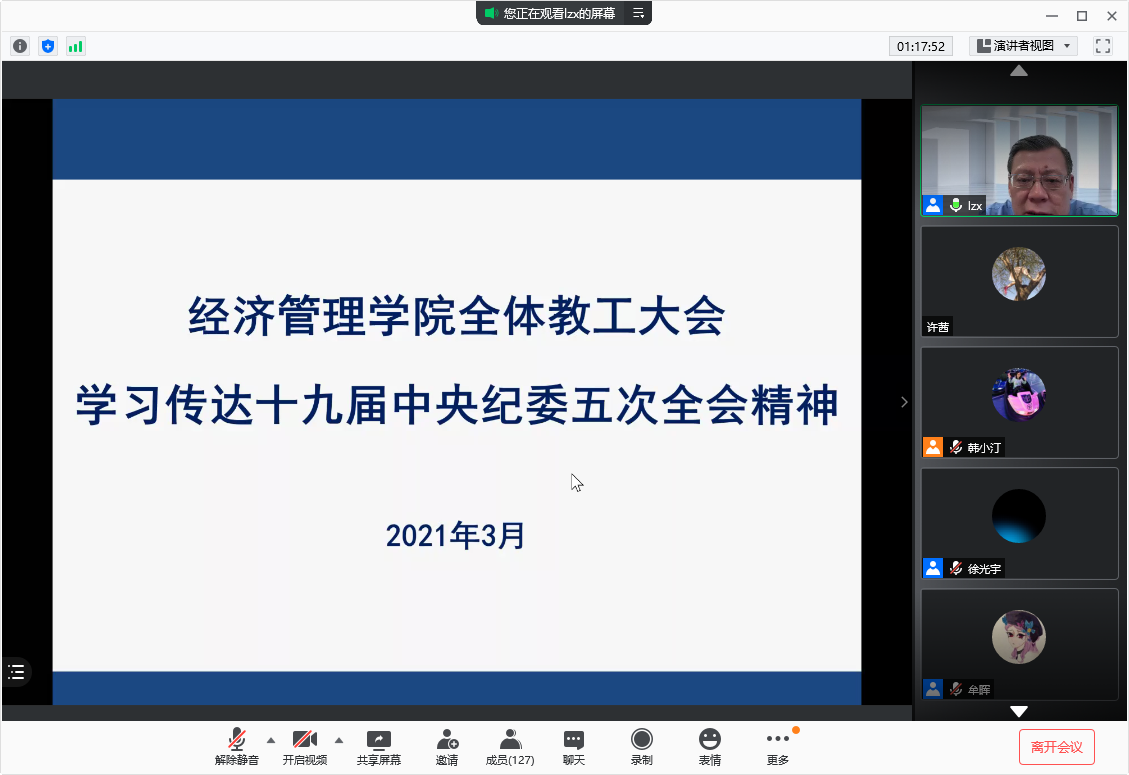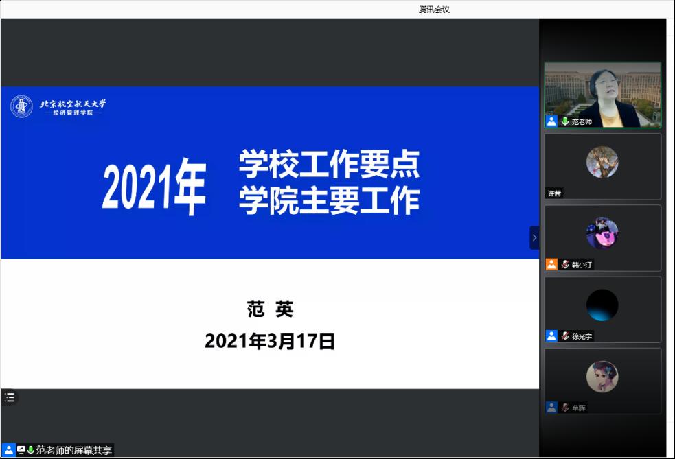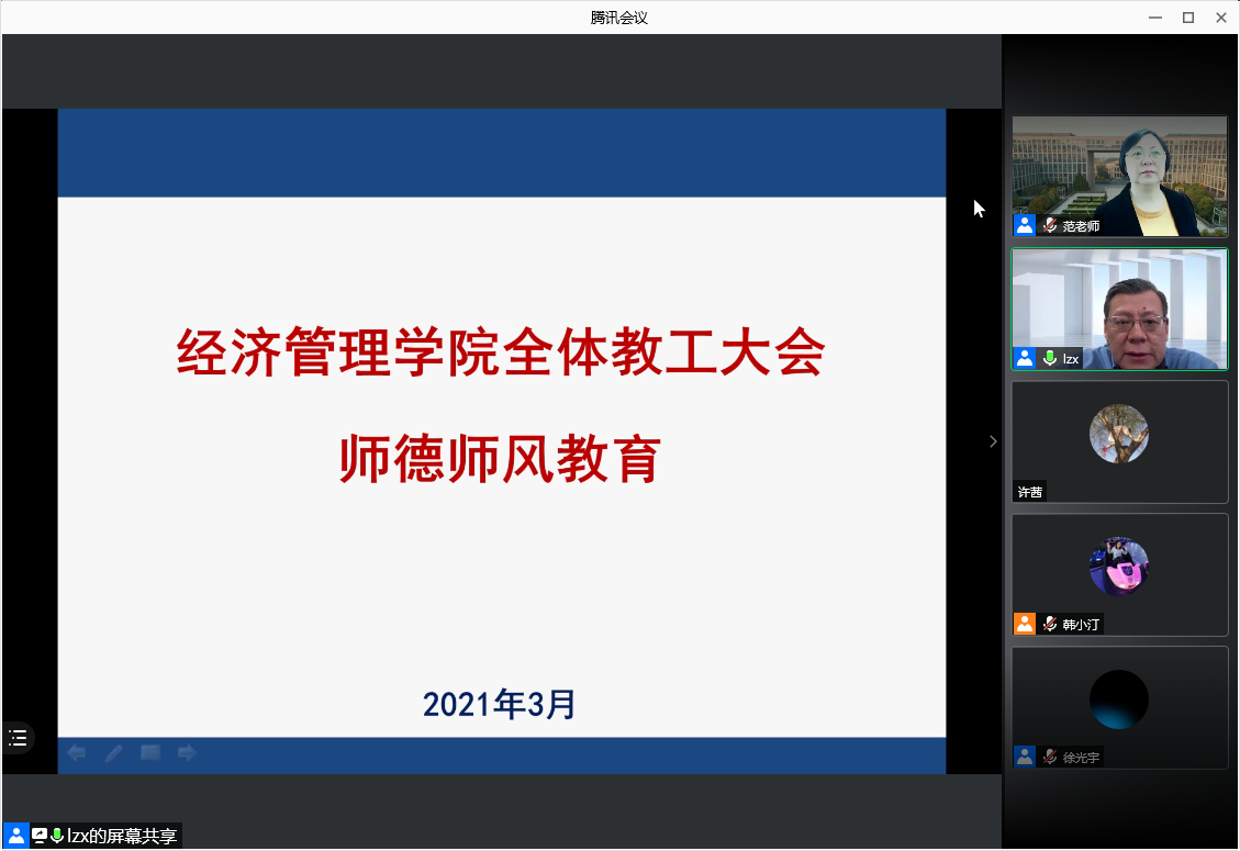 2021年3月17日下午,威廉体育williamhill召开线上全院教工大会,传达公司2021年度工作要点,部署2021公司主要工作,开展师德师风、安全、保密教育和廉政党课。会议由分党委书记刘志新主持,120余位教职工参加了线上会议。