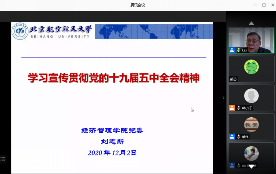 2020年12月2日下午14:30,威廉体育williamhill召开全体教职工大会视频会议,分党委书记刘志新宣贯党的十九届五中全会精神,全院教职工近130人参加会议。