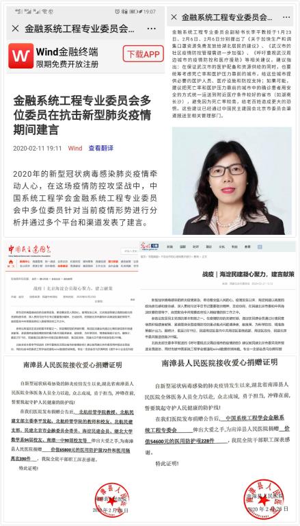 公司李平教授通过民建北京市委报送了《关于加快生产和调集口罩资源免费发放给湖北居民的建议》、《呼吁重视武汉周边城市的疫情防控和医疗援助》、《武汉市的社区疫情防控管理需进一步加强》等建言献策报告。其中,报告《呼吁重视武汉周边城市的疫情防控和医疗援助》被民建北京市委采纳,并报送全国政协。综合成果先后被中国系统工程学会官网、Wind资讯、民建中央官网、光明网报道或转载。除了建言献策外,李平教授还发起了募捐活动(公司多名员工和教师参与了其募捐活动),并在医护用品紧缺和物流困难的时间段,用募集到的6万多元捐款,千方百计购买了400多件医用防护服,寄给湖北省襄阳市南漳县人民医院(二级甲等肺炎定点医院)。此外,她还在武汉疫情最严重、好多重症病人不能住院的时间段,帮助武汉市三个辗转求助的陌生重症病人联系住进医院。她的这些工作近日被北京时间和光明网等媒体报道。