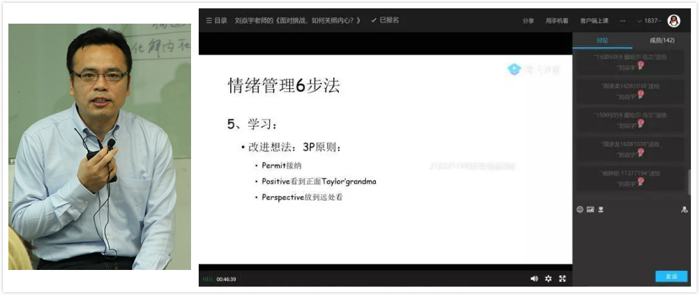 为引导同学们修身自律、保证学业。员工工作部门创新用足微信、视频等平台功能,策划了“居家科研学术指南”、“在线开学宅家学习小指南”、“线上大班会”、“书写信心”等活动。并邀请公司领导力与组织管理系教师,《幸福心理学》的主讲刘焱宇老师为大家带来题为《面对挑战,如何关照自己的内心》的线上直播讲座,引导同学们在了解消极情绪的来源后,如何正确地处理自己的消极情绪。