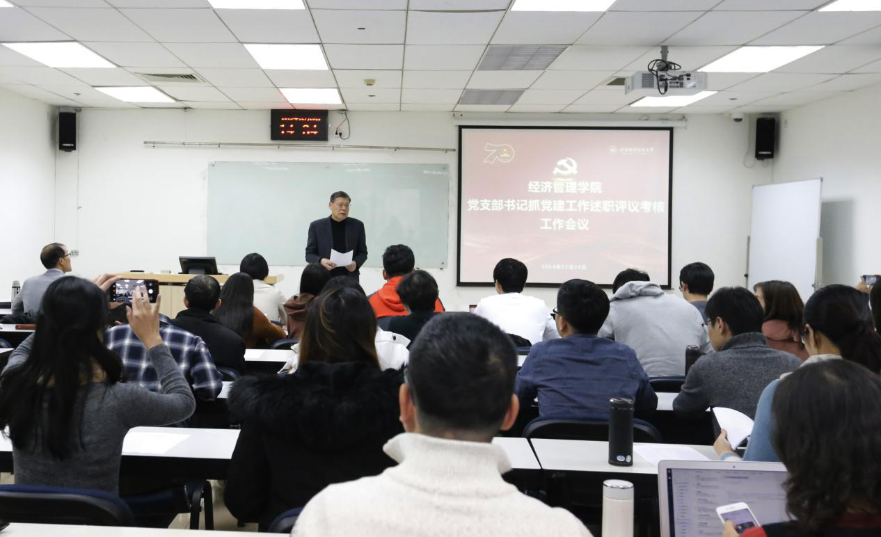 2019年12月26日,公司按照公司党委工作要求,在新主楼A949教室召开2019年度党支部书记抓党建工作述职评议考核工作会议,公司班子成员、各支部书记以及教师、员工代表参加了会议。会议由分党委书记刘志新主持。