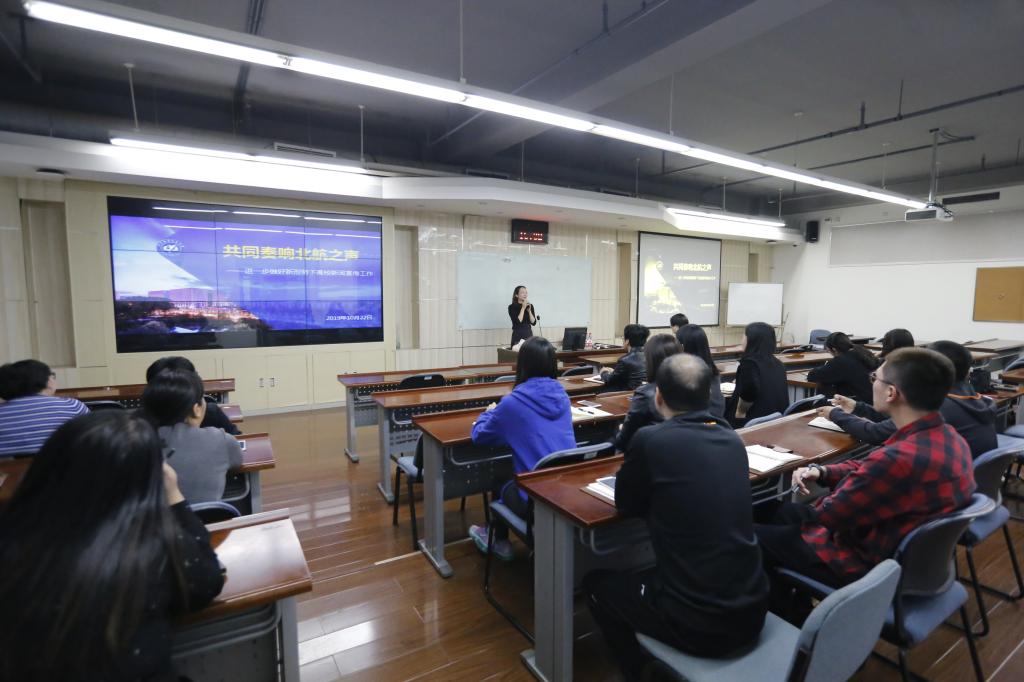 为深入学习宣传贯彻习近平新时代中国特色社会主义思想,提高公司新闻宣传队伍的理论素养和业务能力,加强通讯员队伍建设,提升新闻宣传工作整体水平,2019年10月22日,公司特邀请公司党委宣传部副部长、新闻中心副主任余敏,为公司带来题为“共同奏响北航之声——进一步做好新形势下高校新闻宣传工作”的讲座。牟晖副经理、全体通讯员及部分机关人员参加了本次培训。