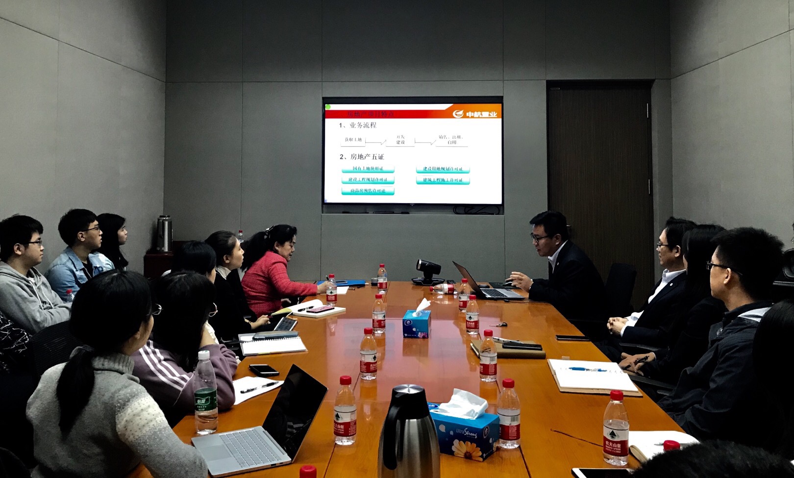 随后,师生们来到企业会议室进行主题座谈。王经理首先从成本工程造价的角度对中航资本大厦的整个建设工程进行简要介绍,明确指出了估算、概算、预算、结算四个步骤的区别与联系;接着,财务部的张经理从房地产项目的特点出发,引出房地产项目成本核算的过程与涉及到的会计科目,并以中航资本大厦为例,对各级科目需要核算的繁琐内容进行解释说明;最后,总会计师苏总对房地产项目成本的预算管理以及税务处理进行了深入浅出的介绍,尤其对于房地产行业的全周期预算以及并购房地产项目时的税收成本核算问题进行了详细的剖析和解读,师生们受益匪浅。