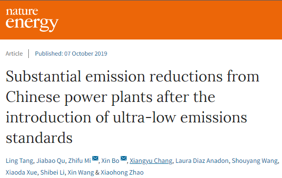 北京时间10月7日,国际知名期刊《Nature》子刊《Nature Energy》(影响因子54,全球期刊排名第7)在线刊登了公司双聘教授汤铃、在读博士薛晓达及其合作者的研究论文“Substantial emission reductions from Chinese power plants after the introduction of ultra-low emission standards”(中译:超低排放改造大幅降低中国火电排放)。论文基于大数据技术,分析了在线排放监测(continuous emissions monitoring systems,CEMS)数据,构建了一套全新的排放清单模型,发现:中国火电已提前超额完成了超低排放改造目标,实现了大幅减排。该研究结果向世界传递了中国治理雾霾的信心与决心,为下一步全面战胜雾霾提供了坚实的数据分析与技术支撑。