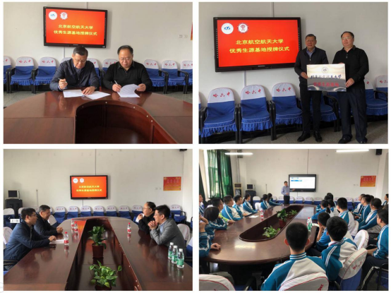 5月10日,马进喜处长与单伟副教授前往哈尔滨师大附中、哈尔滨三中开展招生宣传。马进喜处长、单伟副教授与两所中学的校领导进行了深入交流,并简要介绍了北航的办学理念和人才培养情况,以及近几年来在黑龙江省的招生情况。随后,马进喜处长与两所中学分别签署了优质生源合作协议,增强了北航与黑龙江中学的联系。