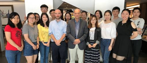 暑期公司期间,学员们与Grubb教授和Drummond老师进行了形式活泼多样的交流,近距离多角度的领略了国际学者的风采。最后,在Grubb教授即将出发去机场时,同学们纷纷表示感谢和不舍,并与Grubb教授合影留念。