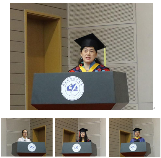 面对着恩师的谆谆嘱托和期望,与学弟学妹真挚的祝福,2018届毕业生栾静和郭哲恺作为毕业生代表发言,回顾了自己在北航的学习之路以及师生恩情,并表示2018届全体毕业生将怀着对母校的感恩和怀念之情,奔赴工作岗位,实现自己的人生理想和价值。