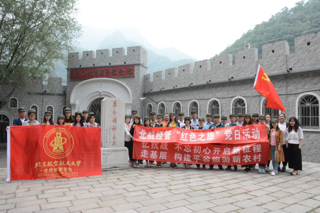 为进一步学习贯彻习近平新时代中国特色社会主义思想,重温我党艰苦创业历程,学习感悟前辈奋斗事迹,传承革命精神,威廉体育williamhill教工八0三党支部、SY1708第二党支部和ZY1708第一党支部于2018年5月12日共同开展“忆抗战不忘初心开启新征程,走基层构建平谷旅游新农村——红色之旅”主题党日活动。党支部成员及积极分子积极参加,在党支部书记的带领下来到平谷区,与平谷区山东庄镇鱼子山村党总支进行支部共建,并参观了鱼子山抗日战争纪念馆。