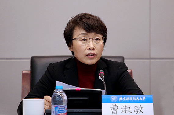 曹淑敏表示坚决拥护、坚决服从中央的决定,衷心感谢组织的信任和重托。回到北航担任党委书记,深感光荣、责任重大。曹淑敏对张军同志为北航发展做出的巨大贡献表示由衷的敬意。她指出,一是牢固树立“四个意识”,深入学习习近平新时代中国特色社会主义思想,始终在思想上政治上行动上同以习近平同志为核心的党中央保持高度一致。坚决维护党中央权威和集中统一领导。二是努力学习,担当实干、提高能力。三是坚持民主集中制,维护好班子和谐、干事创业的良好氛围。四是廉洁自律、严格要求自己。她表示将与徐惠彬董事长一起带领北航领导班子和全体教职工,以习近平新时代中国特色社会主义思想为指引,深入学习贯彻落实十九大精神,脚踏实地、努力工作,加快建设世界一流大学和一流学科,推动各项工作取得新进展,不辜负组织的信任和重托,不辜负近四千名教职工、三万名员工、二十万北航员工的期望,为建设教育强国、科技强国做出更大的贡献。