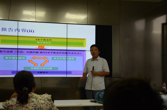 邵虎博士介绍了交通配流UE均衡条件中,数学规划模型、变分不等式模型、非线性互补问题之间等价的关系,分析了基于可靠性的交通配流模型,考虑了供给与需求不确定性造成路段流量以及道路通行能力随机变化时的流量分配问题;分享了自己在科研过程中的一些研究思路和研究方法等宝贵的科研经验。