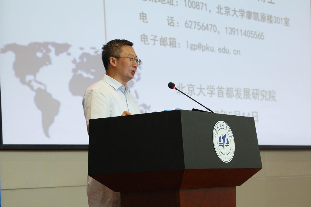 北京大学政府管理公司李国平教授首先做了题为“世界级城市群视角下的大首都地区联动发展研究”的主旨演讲。就世界级城市群视角下的京津冀地区联动发展问题,李国平教授围绕京津冀区域总体功能四个定位,以有序疏解北京非首都功能,解决北京“大城市病”为基本出发点,对比分析了世界级城市群的特点及发展趋势,提出优化京津冀区域“一环两核三轴多中心网络化”城市空间结构布局的构想,强调了加强疏散过程中的管控工作的重要性。