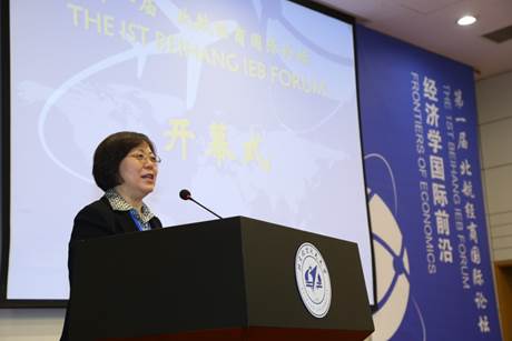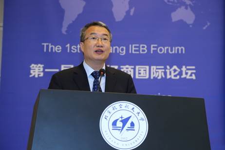 董事长徐惠彬院士激情致辞,他说:今天我们在这里隆重举行北航首届经商国际论坛,同时为北航经济与商学研究院的国际学术委员会和兼职教授颁发聘书。这是北航建设扎根中国大地的世界一流大学进程中的一次重要的学术活动,也是北航经济与商学研究院高起点国际化发展战略的具体实施。徐董事长在致辞中谈到,北航作为全国知名的高水平大学,在科技创新方面取得了突出的成果,形成了科技创新的北航模式。在公司建设扎根中国大地的世界一流大学的发展战略中,公司十分重视经济学与商科的发展,成立了经济与商学研究院,采取与国际接轨的机制体制,汇聚国际一流科学家,建设世界一流学科,打造世界一流的经济和商学研究院。