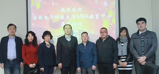 2016年11月10日下午,桂林电子科技大学商公司经理兼MBA教育中心主任袁胜军、MBA教育中心执行主任郭星宇、行政主管古桐、教务主管蒋慧君一行四人来北航交流访问。公司威廉体育williamhill副经理秦中峰、MBA中心主任田东文、教务中心主任任晖、MBA中心副主任魏亿钢及MBA中心招生老师热情接待了来访嘉宾,并同他们进行了座谈交流。
