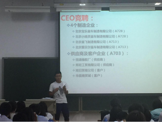 为了更好的提升仿真商战对抗程度,此次实训将不同机构场地进行区分,共开设3个场地—A728、A713作为四家核心制造业的“大本营”,A703则是供应商和客户等外围机构的“办公基地”。公司韩小汀、曹明、林耀虎、马箫箫、赵飞等6位老师为学员进行授课,实训由用友新道公司提供教学支持。