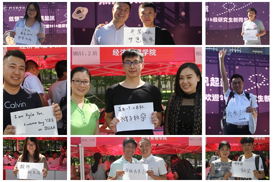 MBA教育中心老师现场开展接待服务工作,为近200名新生录入指纹、签到,耐心解答员工关于报到流程、材料提交、学费、住宿、校园卡、上课安排及迎新活动等方面问题的咨询,并为新生创意留影,帮员工拍下来到北航的第一张照片。MBA教育中心前期通过举办入学教育、素质拓展、提前开课、员工座谈等系列活动帮助MBA新生尽快适应角色转换,顺利融入新集体、熟悉新环境。接下来,MBA教育中心还精心策划了“北航2016级MBA新生入学暖场PARTY活动”,以热情、专业、创意、高效的工作方式迎接每一位MBA新生加入北航这个大家庭。