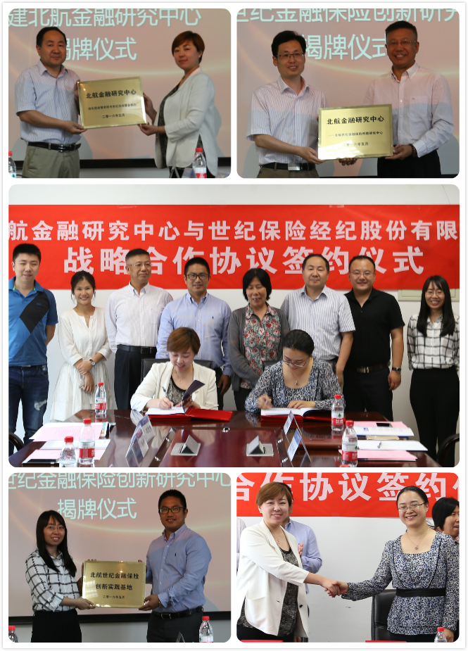 2016年5月24日,北航金融研究中心与世纪保险经纪股份有限公司战略合作协议签约仪式在北航新主楼A612举行,双方签署战略合作协议,并为“共建北航金融研究中心”、“北航世纪金融保险创新研究中心”以及“世纪保险经纪员工实习基地”揭牌。