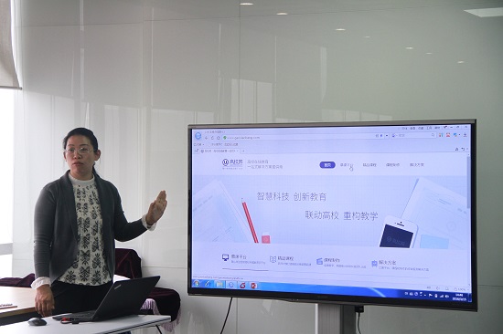 走进致真大厦21层,同学们就被走廊里一整排的动态演示墙所吸引。在演示墙前,来自市场部的员工用活泼而流畅的英文,为同学们介绍慧科教育集团的发展历程。结合着动画与讲解,同学们的理解更为直观,也埋下了许多深思,留在随后的研讨会中深入探讨。