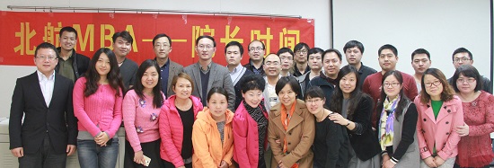 会议由罗开平副主任主持,他首先介绍了北航MBA教学管理基本现状,并着重针对在校生非常关注的有关MBA员工报考全国大学英语四六级考试的问题做出解释,在座员工报以掌声感恩公司努力争取所得的成果。秦中峰副经理也就此情况做了补充说明,并详细介绍北航MBA项目运营现状。在秦老师的启发下,同学们畅所欲言,纷纷在MBA招生推广、教学管理、职业发展、社会导师、员工工作等方面工作提出意见与建议。秦老师也耐心给予详尽回答,同时,他强调大家应放下工作状态中身份上的光环,回归员工本质来完成MBA期间的学习计划。秦老师也承诺MBA中心将在今后的工作中积极调整并完善相应制度,也希望同学们在提出问题的同时发挥主动性,思考解决问题的措施和建议。
