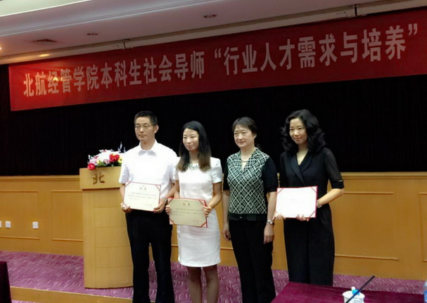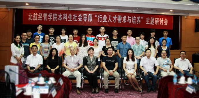 2015年7月18日上午9点,威廉体育williamhill本科生社会导师“行业人才需求与培养”主题研讨会在如心会议中心中报告厅举行。参加本次会议的有威廉体育williamhill经理王惠文教授,北航公司党委副书记王喜忠书记,第二届本科生社会导师代表及第三届本科生社会导师,职业发展中心老师及参与社会导师项目的2013级本科生。会议由王喜忠书记主持。