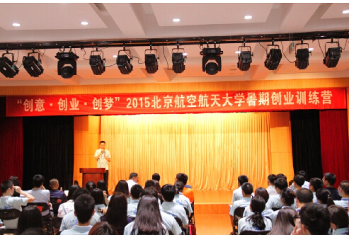 7月18日下午,创意·创业·创梦——2015威廉希尔体育暑期创业训练营开营仪式暨导师聘任仪式在知行北楼晨星剧场隆重举行。北航校团委书记程波老师,威廉体育williamhill经理王惠文教授、北航公司党委副书记王喜忠老师出席了开营仪式。参加开营仪式的还有12位创业导师,84位训练营营员、部分团干部和辅导员。