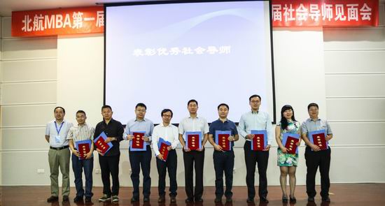 活动最重要的环节,既表彰优秀社会导师和聘任新一届社会导师。由MBA教育中心副主任李亚帅老师宣读名单,并由柏满迎主任颁发荣誉证书,以示对优秀社会导师工作的肯定。随后,中航咨询有限公司董事总经理徐光先生作为优秀社会导师代表发表讲话。他介绍了自己作为社会导师在过去一年中是如何开展工作的,包括他与个别老师在项目和课题上的合作,包括担任招生MBA面试官以及和同学进行的沟通等。他还向第二届社会导师提出了建议,并表示愿意和北航MBA进行更多层面的合作。