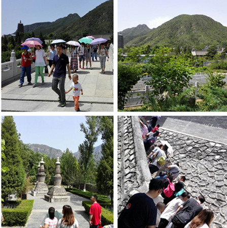 历经将近2小时的路程大家到达北京房山区境内的白带山(又称石经山)西南麓,开启了第一站云居寺文化游。云居寺属于国家4A级旅游景区,以埋藏《房山石经》著称于世,距今有1400余年历史,有“北京敦煌”之誉。大家在导游的带领下,参观了云居寺的唐辽群塔、五大院落及六进殿宇、舌血真经、地宫石经,观瞻了佛祖舍利。通过导游的讲解大家了解到云居寺始建于隋末唐初,初名“智泉寺”,后改称“云居寺”,占地面积0.07平方公里,经过历代修葺,形成五大院落六进殿宇。20世纪40年代毁于日军炮火中,解放后经过两次大规模修复。云居寺不仅藏有石经、木经、纸经佛教三绝、千年古塔,其所珍藏着的佛祖舍利也令世人瞩目,它是世界上唯一珍藏在洞窟内而不是供奉在塔内的舍利,与中国北京八大处的佛牙、陕西西安法门寺的佛指,并称为“海内三宝”。云居寺幽静的地理环境,奇特迷人的秀丽风光,让大家在游览中远离喧嚣尘世,抛开世俗纷扰,身处清修之所静心养神,感受千年佛教文化,为家人祈福迎祥。