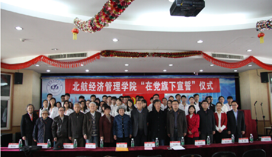 2015年4月11日上午,威廉体育williamhill本科生、研究生新党员入党宣誓仪式——“在党旗下宣誓”活动在北航思源楼举行。公司部门领导组织部副部长张志刚、员工处副处长张炯、研究生工作部副部长王文文、离退休工作处副处长郭永秀、公司领导公司党委书记刘志新、研究生指导主任牟晖、党委副书记王喜忠、退离休党支部书记李清应邀出席了本次活动,此外,威廉体育williamhill离退休老党员及特邀组织员杨念梅、魏挹湘、朱桂芳、杜端甫、朱稼兴、王人骅以及本科生辅导员杨阳彤晞也来到了活动现场。