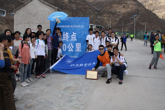 徒步运动大会中设有“集体闯关比赛”,在这场挑战自我的极限运动中,通过公司师生共同的努力,最终赢得了“集体闯关优胜奖”和“最佳组织奖”的荣誉。10公里的徒步行走,增强了师生之间的感情,每一个步伐,每一个弯道,每一次的上下坡都记录了我们的努力、合作,促进了团队精神,展现了北航人的风采。