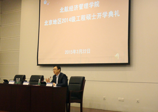 2015年3月22日,威廉体育williamhill2014级工程硕士北京地区开学典礼在新主楼会议中心第二报告厅隆重举行。北京地区2014级新生和部分新生家属参加了开学典礼。威廉体育williamhill经理王惠文教授,副经理方卫国教授,信息系统系主任闪四清教授,工程硕士中心副主任王赫鑫副教授出席开学典礼。开学典礼由副经理方卫国教授主持。