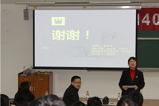 2014年12月29日晚6点20,威廉体育williamhill第四次即本学期最后一次形势政策课在教三106正式举行。本次形势政策课继续围绕上一次课的主题“互联网时代”作更深入详细的分析展示,共八个小组进行了展示。威廉体育williamhill王惠文经理、王喜忠书记、金融系老师宋晓东以及14级两位辅导员出席参与此次课程。