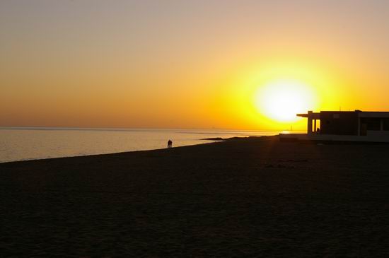夕阳下的海边--夕阳下的海边,情侣牵手而行