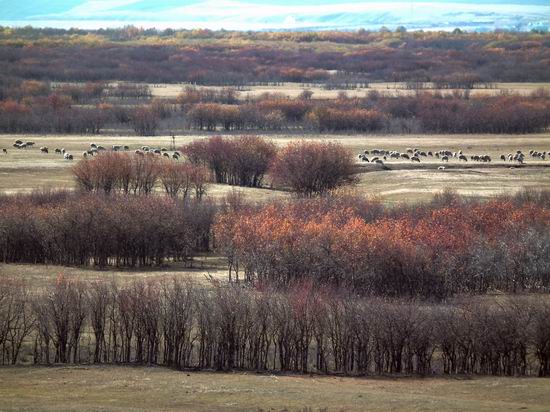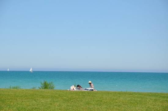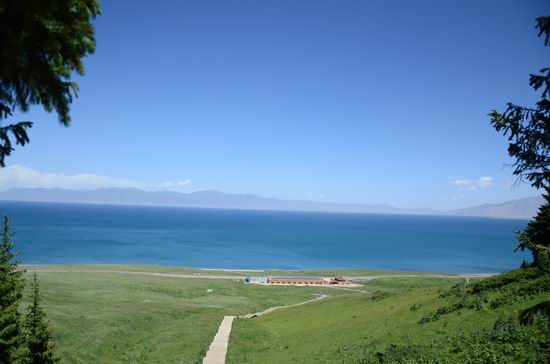 边际--草原、湖、蓝天交接到一处,构成了一条天际线