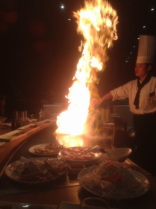 鬼脸--看着厨师高超的技艺折服,顺手拍下火势
