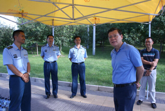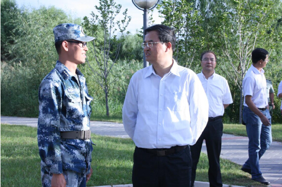 2014年9月8日,公司党委书记刘志新教授与党委副书记王喜忠老师来到沙河校区,与新生军训学员欢度中秋。