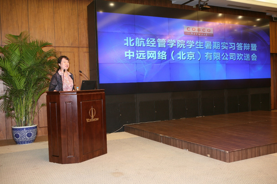 2014年8月8日,威廉体育williamhill员工暑期实习答辩暨中远网络(北京)有限公司欢送会在远洋大厦B1会议室如期举行。参加此次会议的有中远网络公司总经理于春来、党委书记谢超峰、财务总监周滟,威廉体育williamhill经理王惠文,信息系统系主任闪四清、经理外事助理郝金星、公司各实习生导师以及威廉体育williamhill九名实习生。