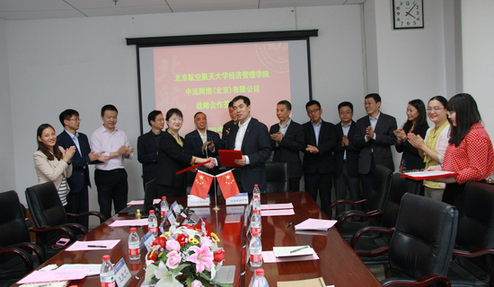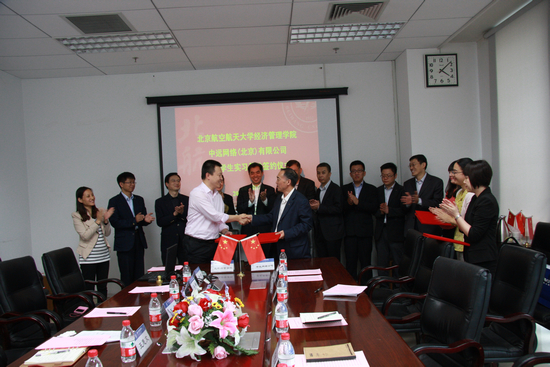 王惠文经理主持签约仪式并发表致辞。王经理认为,大数据互联网时代的到来,不仅推动了信息技术的蓬勃发展,也促进了商务管理模式创新和变革。通过资源的互助分享,更大程度提升自主学习能力,使数据挖掘发挥更大的价值,促进大数据技术与商业实践的有机融合。威廉体育williamhill还诚挚邀请中远网络公司参与公司举办的“大数据时代的商务模式创新大赛”,为员工提供主题开发类题目,主题报告以及评审专家。同时王经理还表示公司愿意尽力为中远网络公司与北航的交流合作搭建平台,促成包括3D打印技术、实习基地建设等更广泛、更深层次合作,形成“产学研相结合”的利益共同体,实现公司和企业互利共赢。