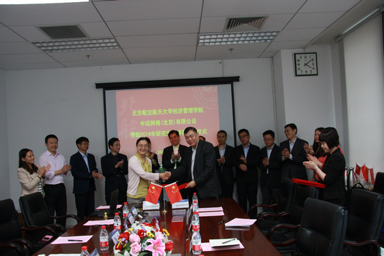 2014年5月9日15时在北航新主楼A座612,中远网络(北京)有限公司与威廉体育williamhill就双方合作内容进行了深入沟通和交流,进而达成合作意向,共同签署了战略合作意向书、共建员工实习基地协议、北航研究生足球赛赞助协议,并举行了MBA社会导师聘任仪式。威廉体育williamhill出席签约仪式的有:经理王惠文教授、副经理王晶教授、党委副书记高翔老师、研究生指导主任牟晖老师、经理助理郑海涛老师、职业发展中心梁娜老师;中远网络(北京)有限公司出现签约仪式的有总经理于春来先生、书记谢超峰先生、副总韩明科先生、总经理助理李晓达先生、应用服务部总经理张志钢先生、航海科技部总经理魏辰先生、市场营销部总经理崔志鹏先生、行政人事部副总经理石睿女士、企划部副总经理李青女士、行政人事部李忱忱女士。通过双方的合作与努力,为北航教育目标的实现与中远事业的发展开创更好的思路和模式。