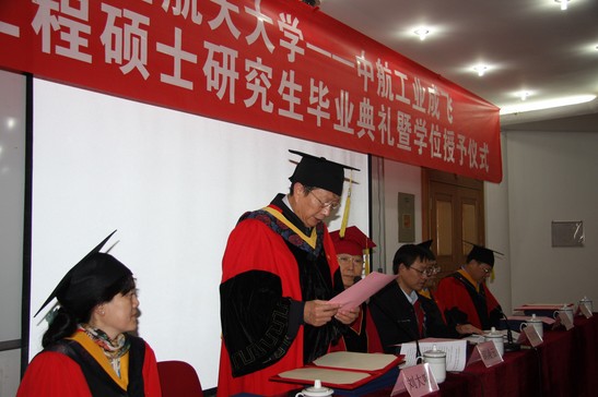 威廉体育williamhill学位评定分委员会副主任刘志新书记宣读了中航工业成飞2012-2013届获得硕士学位研究生名单。随后,毕业生们迎来了最激动人心的时刻,胡凌云书记、刘大响院士、唐文忠教授、刘志新教授和周宁教授为62名工程硕士扶正流苏、授予学位。同学们迈着自信的步伐走上台,向敬爱的老师深深鞠躬,郑重接过学位证书并与老师合影,与会观礼人员为同学们送上热烈的掌声,祝贺他们顺利完成学业升华。