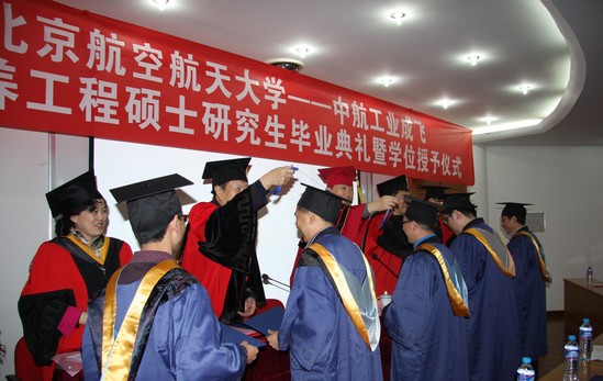胡凌云书记向圆满完成学业的工程硕士表示祝贺,介绍了威廉希尔体育服务社会的理念,指出北航各项卓有成效的工程硕士培养工作,满足了高层次人才知识更新、岗位适应、能力提升的学习需求,为空天信等行业培养了一大批高层次管理人才和技术专家,许多毕业生已经成为企业发展的中坚力量。胡书记与毕业生们郑重约定:“同学们肩负着成飞乃至中国航空工业发展的重大历史使命,请你们将北航求学经历和青春激情转化为人生远航的动力,希望你们乐于学习、敢于创新、勇于攻关、甘于奉献,充分释放正能量,为中航工业成飞跨越式发展增光添彩,共同实现中华民族伟大复兴的航空梦!”
