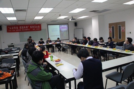 在接下来的交流中,各位员工师姐与同学们分享了他们在MBA的学习生活和工作中的经验与见闻。就职于IBM的曹子康员工向同学们详细分析了就读MBA所能得到的收益,他指出,两年的投入,能带来薪酬和职位方面较大的变化,希望同学们能规划好MBA两年的学习时间,充分利用身边的资源,提高思辨能力和创新能力,实现事业上的华丽转身。邱志刚员工就自身在国企的工作经验,告诫同学们要搞清楚自己花费大量时间和金钱读MBA的目的,是出于户口的考虑,还是希望能在工作方面有所帮助,并且在读MBA两年时间中切实的考虑和解决好这些问题。而作为北京奔驰汽车有限公司项目质量管理部门经理的韩方员工,则向同学们提出了专业的建议,希望各位同学从现在就开始准备,明确目的和方向,在读MBA的过程中,不断提升自我,以最佳的状态面对将来的工作。