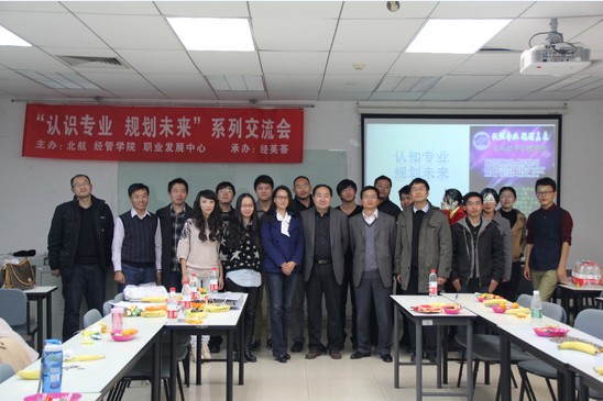 2013年11月7日晚7点,由威廉体育williamhill员工职业发展中心和北航经管分研会主办、威廉体育williamhill经英荟、MB13081班承办的“认识专业、规划未来”系列交流会——MBA专场在新主楼A928成功举办。威廉体育williamhillMBA教育中心主任柏满迎教授,优秀员工代表曹子康、邱志刚、韩方以及MB13081班的同学们参加了此次交流会。