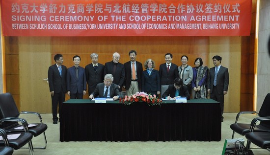 11月6日上午,威廉体育williamhill与约克大学舒立克商公司“中加联合高级管理教育中心”签字仪式在北航新主楼第二会议室隆重举行。北航董事长怀进鹏院士,约克大学舒立克商公司经理Horváth教授,加拿大驻华大使馆政务处参赞Bentley女士,北航国际交流合作处处长马进喜教授,威廉体育williamhill经理王惠文教授、副经理王晶教授以及约克大学的其他到访嘉宾及北航国际交流合作处、威廉体育williamhill教师代表出席了签约仪式。王惠文经理和Horváth经理共同签署了威廉体育williamhill与约克大学舒立克商公司合作协议。