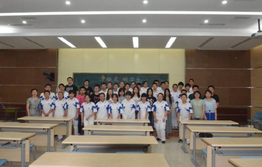 1008第一党支部的同学在班会后与初二四班的同学们集体合影留念