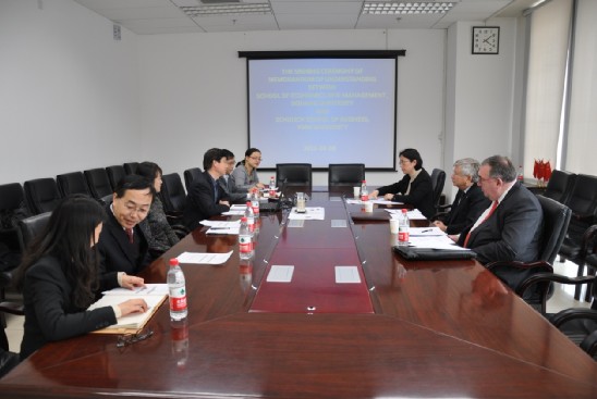 4月8日下午,加拿大约克大学舒立克商公司(Schulich School of Business, York University)经理霍维斯教授(Dezs? J. Horváth)、舒立克商公司高层教育中心执行主任米德尔顿教授(Alan Middleton)和舒立克商公司高级管理教育中心中国区主任王瑜女士一行访问公司。北航国际交流合作处处长马进喜教授和公司经理王惠文教授热情接待了舒立克商公司客人。公司副经理方卫国教授、副经理王晶教授、研究生指导主任牟晖博士以及国际交流合作处夏菊萍老师等参加了会见和会谈。