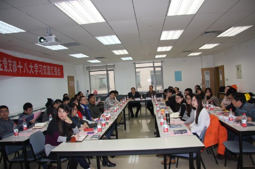 2012年12月15日,威廉体育williamhill在新主楼A1048召开员工党支部十八大学习交流汇报会。本次交流汇报会的主旨是“深入学习贯彻党的十八大精神,全面提高党建工作的创新水平”。公司党委书记刘志新书记,研究生指导主任牟晖老师,员工工作办公室主任衣萌老师,研究生工作办公室欧阳丽莎老师,12级硕士辅导员王腾飞及全体本科及研究生党支部书记参加了会议。