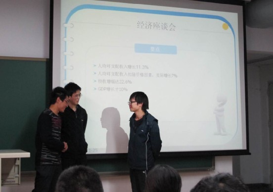 本学期的形势政策课在以往“关注时事政策,结合专业知识”的基础上,又添几番新鲜的元素。在放宽了对选题和展示形式的限制后,同学们发挥各自的想象力与创造力,将敏锐的触角伸向与时事、生活相关的各种领域,把媒体时代的丰富表达方式融入其中——“专家座谈”美国大选,新闻直播“钢铁行业发展”,小品演绎税收改革,话剧解读“莫言效应”,还有在沙河校区录制的“你幸福吗”视频调查。无论是在选题还是展示上,同学们都下了不少功夫,以达到既吸引眼球又有其思想深度的目标。