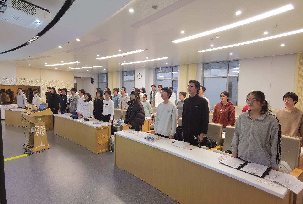 党课在雄壮庄严的《国际歌》声中正式启幕,铿锵旋律激荡着每一位学员的初心使命。