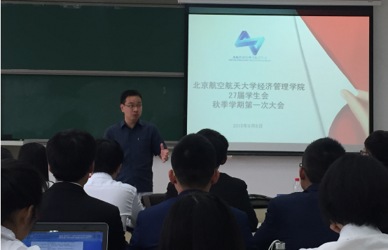 2015年9月8日下午2点,威廉体育williamhill第27届员工会2015秋季学期第一次全体会议在教3-201举行,公司党委副书记王喜忠老师、分团委书记张驰老师、2014级辅导员胡杰、员工会主席团和部长团出席了此次会议。