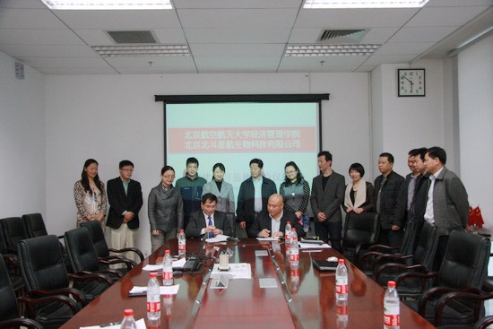 4月25日下午,威廉体育williamhill和北京北斗星航生物科技有限公司关于共建实习基地的签约仪式在威廉希尔体育新主楼A612召开。